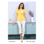 Color-Blocked Casual Set (123-5075): A bright yellow short-sleeved T-shirt paired with floral cropped trousers. The print on the chest echoes the pattern on the trousers. A casual yet thoughtfully designed set, perfect for everyday wear at home or short trips. One exclusive floral pattern showcases individuality.
